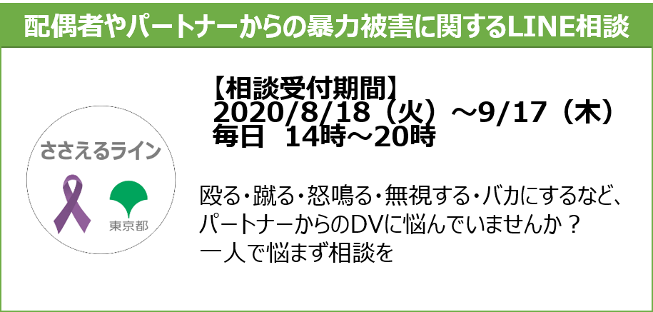 配偶者やパートナーからの暴力被害に関するLINE相談「ささえるライン@東京」