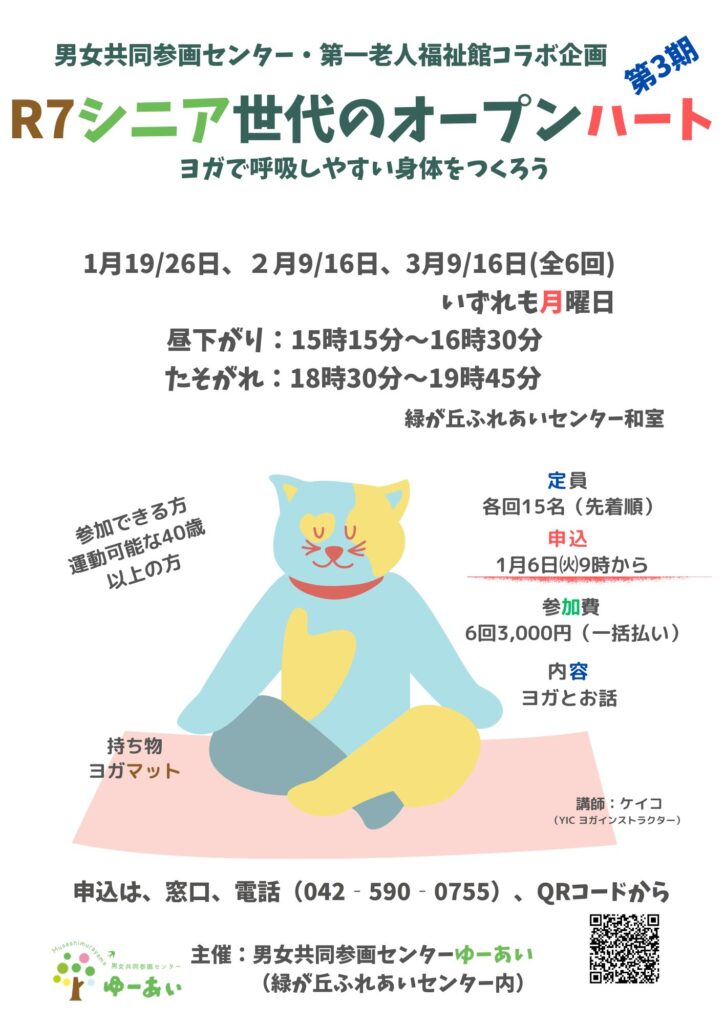 R7 第3期シニア世代のオープンハート~ヨガで呼吸しやすい身体をつくろう~2026年1月6日から参加者募集